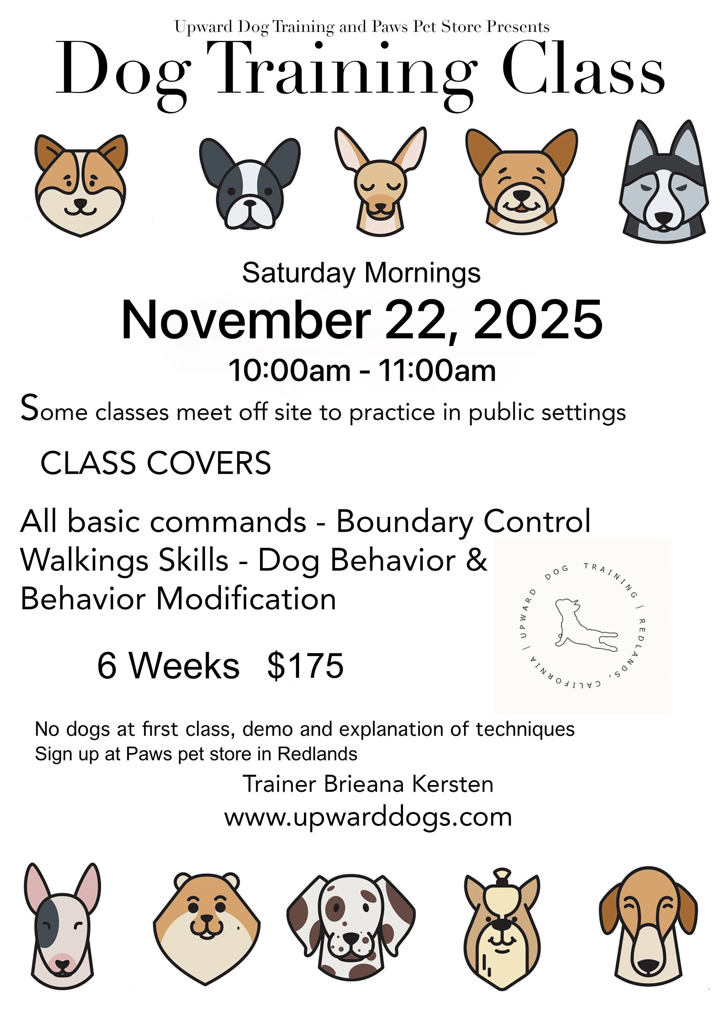 'Thanks to you Upward Dog and your training, Moose is so much more well behaved! Best class ever!'