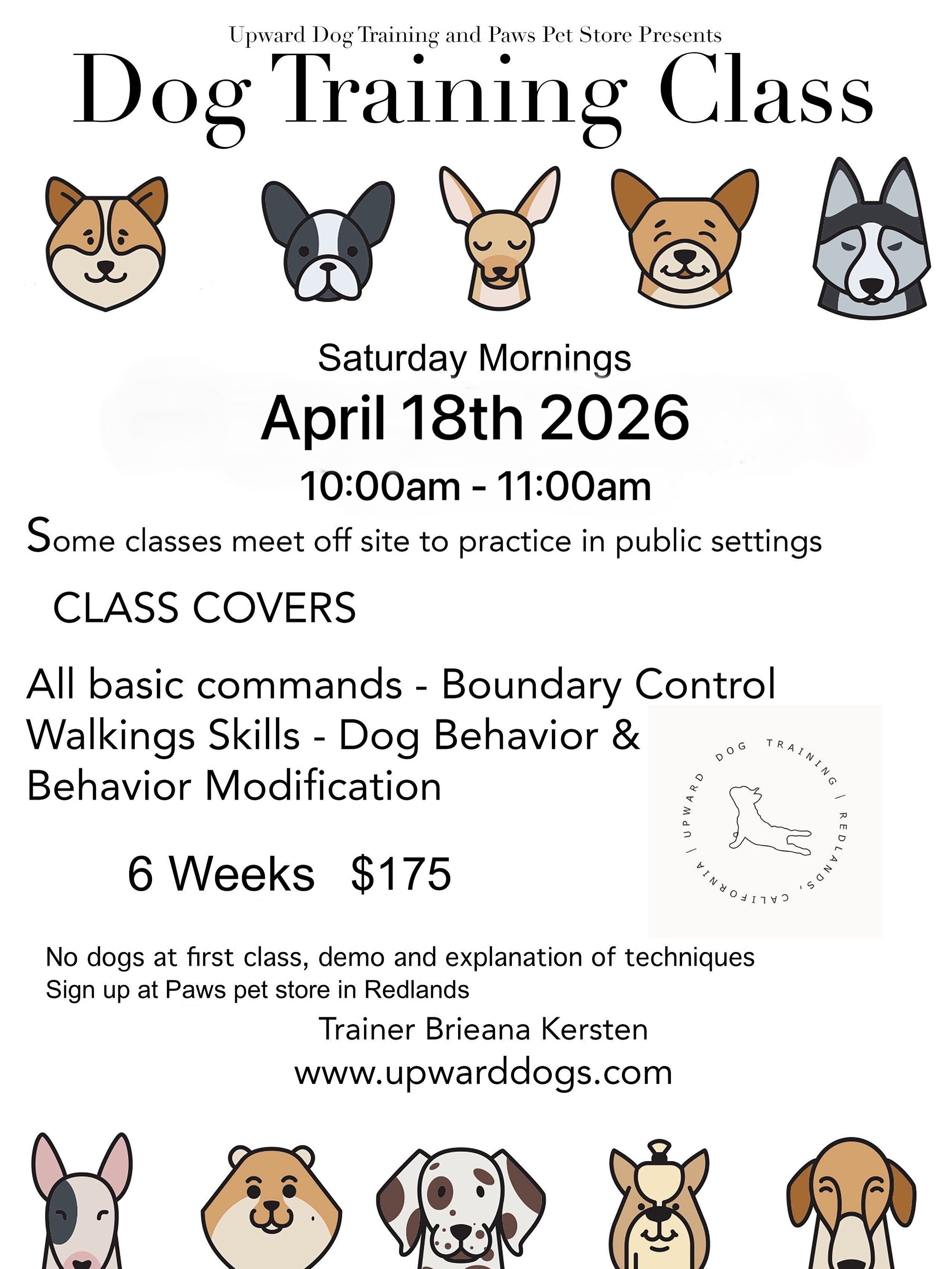 'Thanks to you Upward Dog and your training, Moose is so much more well behaved! Best class ever!'
